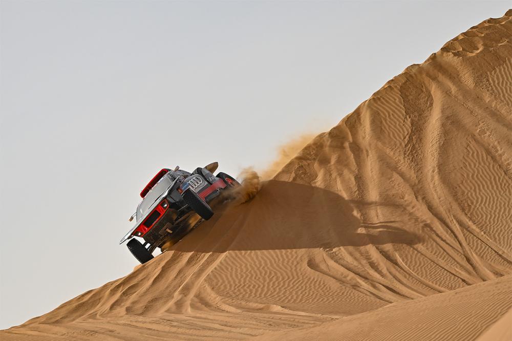 El último piloto de Audi aún en carrera, 3º en la etapa a 6’31’’ de Loeb, aprovecha el paso por el Empty Quarter para hacer un curso intensivo de dunas.